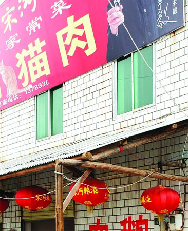 1個(gè)月前,在東莞做過廚師的湘潭人張某回老家開了一家餐館,招牌菜即是這道“水煮活貓”!耙粋(gè)月下來,湖南人沒幾個(gè)愿意吃貓肉的,生意快做不下去了!苯裉,面對(duì)記者的到來,張老板心情很復(fù)雜。