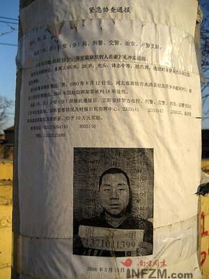 3月12日晚謝萬禮沖監(jiān)成功后,公安部B級通緝令遍見于保定全城。事發(fā)全國“兩會”期間,公安部部長孟建柱要求必須盡快抓獲謝萬禮的批示,給整個河北警方帶來更大壓力。