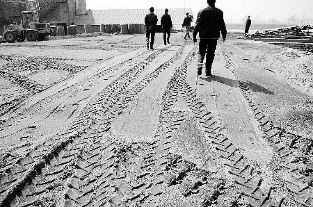 昨日上午10時許,省環(huán)保局監(jiān)察總隊負責人孫自臣帶領執(zhí)法隊員來到一片煙囪林立的磚窯場,穿過一條煙塵滾滾的土路后,執(zhí)法隊員看到在一堆高10多米的礬土礦石后面就是被舉報的土煉制廠。
