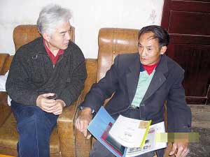 《拍虎》制作方帝都影視公司、金子工作室,近日派出編劇張良策等來到陜西鎮(zhèn)坪采風(fēng),邀請周正龍參與主演。25日下午,主創(chuàng)一行來到周家,正在家門口編織“撮箕”的周正龍很是熱情,談到“華南虎照”更是堅稱其真實性,并表示當(dāng)時相機(jī)是“傻瓜”,如果好點就可以拍到“老虎吃野豬”。