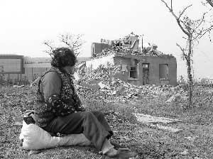 “我的家。 55歲的徐水香懷抱著一只老母雞,癱坐在斷壁殘?jiān)班哉Z。老人住在蘇州市吳中區(qū)郭巷街道,3月27日凌晨,幾十名“身份不明”男子闖入家中將她和老伴拖出屋外,隨后拆了房子。與徐水香同樣遭遇的還有沈建方、陸素貞一家。
