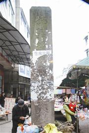 昨日記者專(zhuān)程來(lái)到中和鎮(zhèn)政府門(mén)前30米的一個(gè)街道拐角處看到,一塊高約5米的正方形石柱矗立在街道中央,石柱的正前方刻有“抗美援朝烈士紀(jì)念碑”9個(gè)楷體大字。碑的右面書(shū)有“謝興發(fā)、劉元明烈士,1951年12月30日敬立”字樣。紀(jì)念碑的四面都貼了不少?gòu)V告單,有“住房出租”、有“治療結(jié)核病”等,還有一些則是“性病專(zhuān)科”等等。紀(jì)念碑基座上,還有生意人擺放了不少干雜貨物在此兜售。