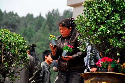 趙亞輝在博客上說,自己正在參加由人民日報(bào)組織的跨時代回訪———“重走中國西北角”,4月4日正好趕上了一年一度在黃帝陵舉行的清明節(jié)公祭黃帝大典。自己祭拜完黃帝陵后,下山時再次途徑舉行大典的軒轅殿,卻被眼前的景象驚呆了:“廣場上不少人手里抱著一盆盆、一束束花,還有很多人正在搶著把擺放在大殿上下臺子上的小花盆拿走。