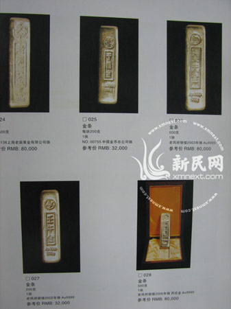 拍品之二 數(shù)根金條 拍賣(mài)會(huì)參考價(jià):人民幣32,000至80,000不等