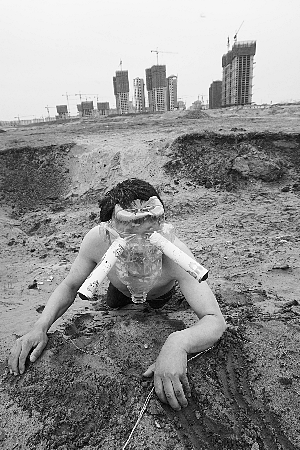 北京宋莊20余藝術家在垃圾場展示行為藝術(圖)
