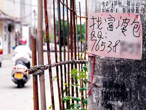 當“阿華”知道記者是從他貼的街頭小廣告上得知其QQ號碼時,顯得有些得意:“我不僅在街頭貼廣告,還印了大批的名片插到小轎車的車窗上,要我提供服務(wù),隨時可以聯(lián)系!