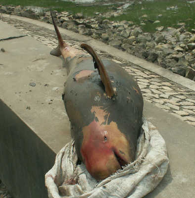昨天,本市(上海)崇明島發(fā)現(xiàn)一只1.82米長(zhǎng),擱淺死亡的罕見(jiàn)巨型江豚,一些當(dāng)?shù)貪O民撿獲后,原打算運(yùn)回家中作為美食,被邊防民警及時(shí)發(fā)現(xiàn)并制止。