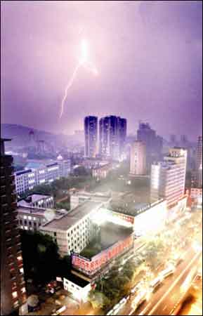 前日晚上11時(shí)以后,江城突然狂風(fēng)大作。昨日零時(shí)開始,伴隨著閃電和轟隆隆的雷聲,漢口和武昌最先開始下起暴雨。截至昨日中午,不同程度的暴雨還在持續(xù)。