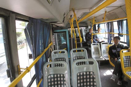 據(jù)介紹,842路使用的是中通客車 (LCK6830G型),兩側(cè)的車窗都是可以打開的,但是除了和售票員并排的兩個(gè)座位旁的欄桿設(shè)置位置較低,其余欄桿的位置差不多都在車窗中央,因此在緊急情況下,乘客也很難從打開的車窗中逃離。