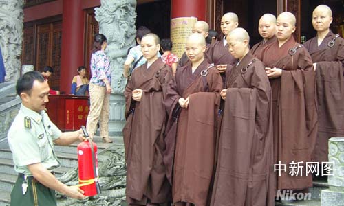 廣西加強奧運期間景區(qū)安全 向僧尼講授正確滅火
