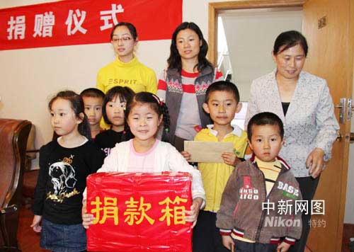 圖為在老師帶領(lǐng)下幼兒園的小朋友把捐款箱搬到了捐款現(xiàn)場。作 者:耿麗君