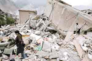 在一處廢墟前,一名年輕的女子不停地喊“媽!媽!我回來(lái)了!”雙眼滿是眼淚,悲傷過(guò)度的她竟然腳一軟癱倒在地下,她身邊的丈夫趕緊扶起她,在她耳邊使勁地講:“啟菊,莫怕,別哭!爸媽會(huì)保佑我們的!彼嬖V記者,這里是他愛(ài)人爸媽的家,發(fā)生地震后,就與親人失去了聯(lián)系,他們就用最大的努力往家里趕,路上一直都抱著一絲的希望,但現(xiàn)在殘酷的現(xiàn)實(shí)讓妻子無(wú)法承受。