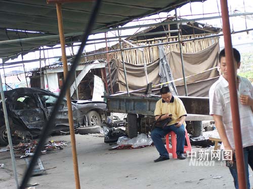 爆炸現(xiàn)場(chǎng)位于龍灣區(qū)龍華村D11幢道路邊上,旁邊有一個(gè)用竹簾和塑料布搭成的簡易棚,棚內(nèi)有人員聚賭。