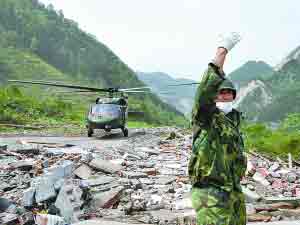 5月19日,空軍某部炮兵科科長戴志強帶領(lǐng)消防員和志愿者徒步15小時后,趕至位居深山的巴蜀電力金河水電站,成功搜尋并營救14名被困山洞中200余小時的礦工。