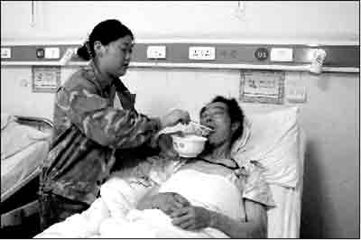 昨天是陳仁平在綿陽第三醫(yī)院的最后一晚,胃口極好的他晚餐吃了3個(gè)餃子。在北川陳家壩的山中被埋后,56歲的陳仁平靠著兩個(gè)雞蛋硬撐了169個(gè)小時(shí),經(jīng)過診斷,他的盆骨骨折。