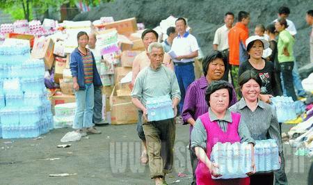 記者隨洛水鎮(zhèn)黨委副書記、發(fā)放救災(zāi)物資的指揮長宋德芝走進(jìn)政府大院。大院門口由武警把守,這里是洛水鎮(zhèn)收發(fā)救災(zāi)物資點(diǎn)。大門口的右側(cè)放著礦泉水,堆積如山;旁邊是食品,而幾間房子里堆放的是被套!耙蚴瞻l(fā)點(diǎn)改了,現(xiàn)在這里不再接收救災(zāi)物資,只需將救災(zāi)物資全部發(fā)放!彼贿呎f,一邊忙著清點(diǎn)大院的東西。