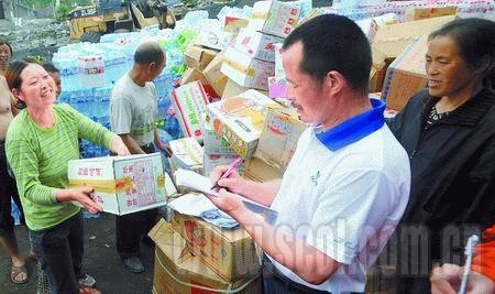 “我們有8個(gè)人,分布在大院的幾個(gè)方位。”他說,每天,來自云南、重慶、貴陽等全國各地的車輛是一輛又一輛,他們運(yùn)送的有水、面包、蔬菜。采訪中,記者注意到一個(gè)細(xì)節(jié),張華峰把捐贈(zèng)救災(zāi)物資的單位和個(gè)人都親切地稱為“客人”,熱情接待,如實(shí)記錄。令張華峰感動(dòng)的是身邊的一些普通人。負(fù)責(zé)卸貨的武警官兵忙完活之后,他們原地休息,從不喝一瓶救災(zāi)水,吃一塊救災(zāi)面包。等待大卡車裝滿救災(zāi)物資,張華峰將車上物資一一記錄在冊,水50件,方便面60包。洛城村主任方遠(yuǎn)福在登記冊上簽完字后,坐上卡車出發(fā)了。