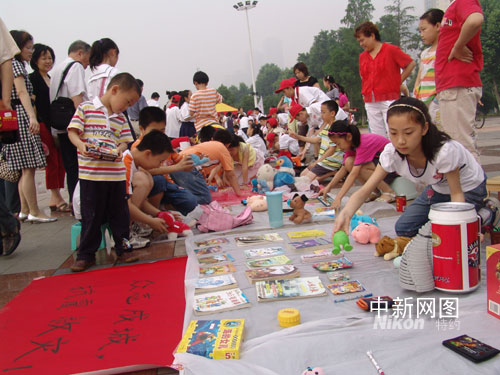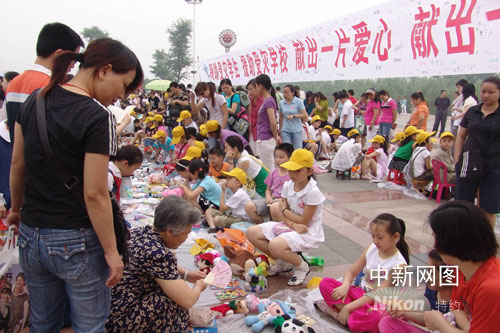 武漢千余少先隊員舉行義賣助災區(qū)孤兒過"六一"