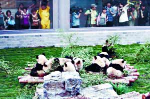 記者還了解到:昨天傍晚,8只大熊貓到達(dá)北京動物園時,國內(nèi)外近百家媒體的記者和數(shù)百名游客夾道歡迎。