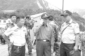 從他們身上,我看到的是汶川公安、四川公安、乃至整個(gè)中國(guó)公安的精神,看到了他們被地震震不垮的脊梁。同樣是從阿壩州公安局步行了7天7夜到達(dá)映秀的阿壩州公安局局長(zhǎng)鄧文國(guó),在談到正在抗震救災(zāi)的阿壩州的所有公安民警時(shí)說(shuō):“我以前總結(jié)阿壩公安精神,是三句話:特別能吃苦、特別能戰(zhàn)斗、特別能奉獻(xiàn),現(xiàn)在我還要加上一句,就是:特別能犧牲!”