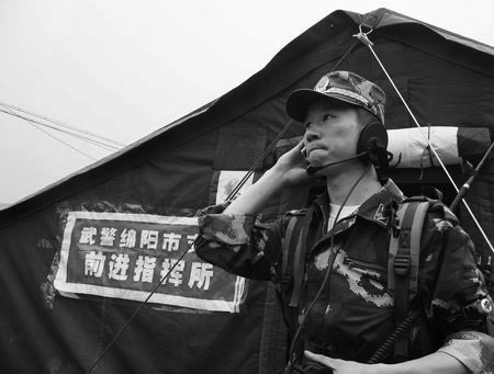 5月12日下午3點(diǎn)多,武警綿陽(yáng)支隊(duì)政委徐超,帶著200名突擊隊(duì)員,向北川進(jìn)發(fā)。從出發(fā)到抵達(dá)北川中學(xué),突擊隊(duì)有一半的時(shí)間徒步前進(jìn)。隊(duì)伍中,有一個(gè)人與其他人不同,他的背上背著通信設(shè)備。他叫陸葦,當(dāng)兵8年,二級(jí)士官,是武警綿陽(yáng)支隊(duì)警衛(wèi)通信中隊(duì)通信班班長(zhǎng),也是該支隊(duì)彼時(shí)前往北川救援時(shí)惟一的通信兵。跳過(guò)一塊又一塊橫亙?cè)诼分械木奘,陸葦夾在隊(duì)伍當(dāng)中奔跑,他聽(tīng)到自己心中有個(gè)聲音在喊:“快一點(diǎn),再快點(diǎn)!”