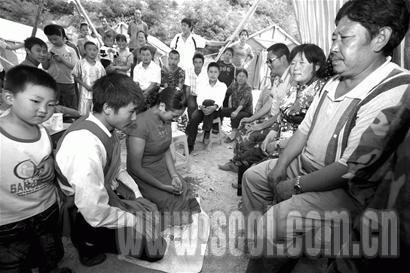 既然要結(jié)婚,就應(yīng)有一頂帳篷作洞房。王小波所在雙河村黃巖組的干部5月31日趕緊去找?guī)づ。但找來找去,最后只找到一頂白色帳篷?/p>