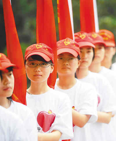 地震發(fā)生后,這里陸續(xù)收治了160多名傷員,其中有10多名孩子,大多是用直升機從汶川映秀鎮(zhèn)運出來的。剛來的時候,孩子們都不說話,目光呆滯。志愿者把這些孩子編入“愛心學(xué)!保嘘爢T對他們包干負責(zé)。