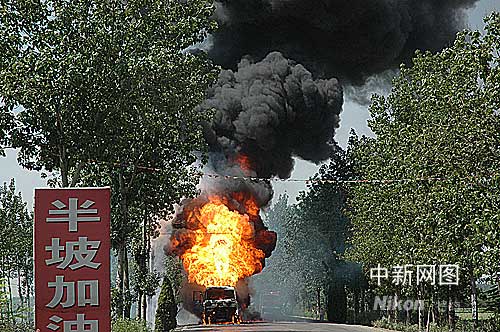 4日上午10時(shí)左右,一輛車牌號(hào)為晉M31909的油罐車,在山西大運(yùn)路運(yùn)城至夏縣段水頭半坡加油站附近失火,瞬間火勢(shì)兇猛。 作 者:長(zhǎng)年