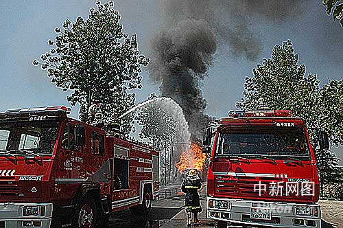 接到報(bào)警后, 消防隊(duì)員火速趕赴現(xiàn)場(chǎng),分派9輛消防車對(duì)失火車輛進(jìn)行撲救。中午12時(shí)30分記者離開現(xiàn)場(chǎng)時(shí)火勢(shì)已經(jīng)得到控制。