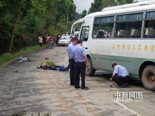 中新網(wǎng)茂名6月7日電(葛燕梅 馮柱)六日下午十五時(shí)許,廣東茂名高州市長(zhǎng)坡鎮(zhèn)關(guān)塘路段大雨滂沱,一輛中巴與一輛摩托車相撞發(fā)生重大交通事故,造成三人死一人重傷。