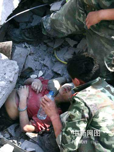 到下午5點(diǎn)鐘左右的時(shí)候,搜救官兵已經(jīng)能夠看到袁藝的頭發(fā)了,這讓所有的人不覺精神為之一振。為了使袁藝能夠保持清醒,官兵們不時(shí)的陪說話。交談中,孝順的袁藝一直在打聽父母和家人的情況,“他們肯定想不到我還活著”,袁藝話中透露著對(duì)劫后余生的無限欣喜與感動(dòng)?吹搅斯俦鴤兙仍男量,堅(jiān)強(qiáng)的袁藝反倒不住的安慰不敢加快挖掘速度生怕碰到她傷口的官兵們:“你們加油,我也加油,我不怕疼......”