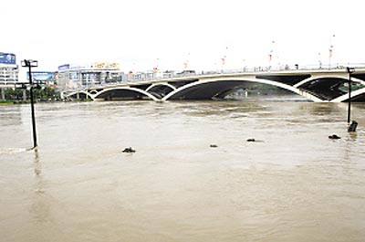 由于漓江水位的上漲,兩江四湖景區(qū)的木龍湖防洪閘已經(jīng)關(guān)閉,位于桃花江和漓江的兩個主要碼頭——文昌橋碼頭和六匹馬碼頭已經(jīng)被淹停止使用。據(jù)了解,受漲水影響,9日晚,兩江四湖游停止漓江和桃花江段游覽,改為內(nèi)湖游覽。內(nèi)賓由知音臺碼頭上下船,外賓在日月灣碼頭上下船,內(nèi)賓票價由149元降為100元。