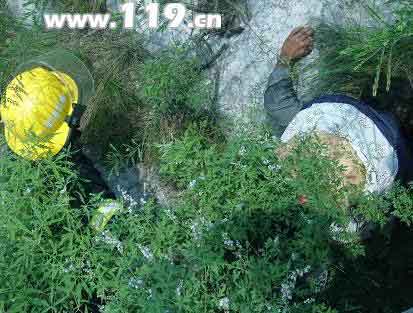 另外一個(gè)受傷人員被甩到離公路100米的深溝中,由于地勢復(fù)雜、雜草樹木多救援相當(dāng)困難,經(jīng)過認(rèn)真尋找路徑,終于救生繩索離受傷人員很近了,由于深溝離地面公路太遠(yuǎn),必須先通過一步一步向上抬一段距離才能施救,中隊(duì)?wèi)?zhàn)士綁好被救人員艱難的向爬,終于到了安全繩能拉到的距離,但是由于山勢陡峭,灌木比較多,于是戰(zhàn)士們拿出機(jī)動(dòng)鏈鋸,邊抬受傷者邊用機(jī)動(dòng)鏈鋸掃清路上的障礙,受傷者終于被救了上來迅速送往了醫(yī)院。