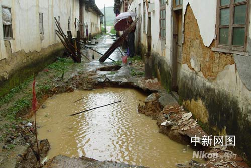 據村民反映,地面塌陷是從6月9日下午3點多鐘開始的,在村民劉細梅和劉河柱的家門前地面先出現(xiàn)一個小坑,后來逐漸變大變深。由于地面塌陷引起涉及5戶村民共8間民房受損,墻壁出現(xiàn)裂縫,大的裂縫約5厘米寬,一些房屋門窗嚴重變型,墻壁表層脫落,房門無法打開,有的房間村民用東西敲擊地板時,地面顫動,有地下空洞的感覺。