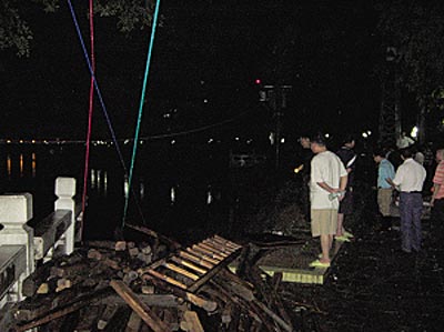 當(dāng)晚9時(shí)左右,記者在河邊看到,岸邊的防洪堤塌陷了20多米,垮塌現(xiàn)場(chǎng)已經(jīng)拉上了警戒線,河池市防汛抗旱指揮部的工作人員正在組織工人搬運(yùn)堆積在岸邊的竹竿和石塊等雜物,為下一步組織修補(bǔ)河堤做好準(zhǔn)備。另外,河堤垮塌段已經(jīng)派專(zhuān)人24小時(shí)守護(hù),以防出現(xiàn)更大的險(xiǎn)情。