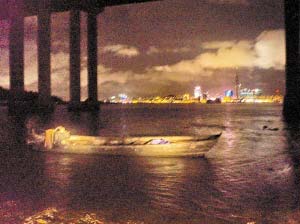 事發(fā)當(dāng)日晚7時20分左右,廣東邊防總隊第五支隊兩名執(zhí)勤哨兵在距離澳門葡京賭場只有一水之隔的珠澳邊防線上巡邏時,發(fā)現(xiàn)橫琴大橋底下一名男子撐著一條小木船正慢慢地向澳門方向劃去,形跡可疑。