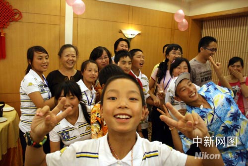 晚上9點10分,旅美華僑林鴻飛女士從相館拿回大家相片,孩子們拿到相片后,爭著讓愛心叔叔阿姨簽名留電話,還有的孩子干脆讓愛心叔叔阿姨就在自己白色衣服上簽名留言。當海南電視臺記者高丹拿著一疊相片來到孩子們中間時,“高丹姐姐,我也送你一張合影照片!”只有幾歲的東東嘻笑著小臉,把一張集體合影送到高丹手上……
