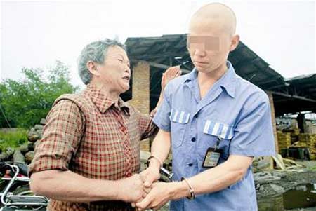 正說著,父親跌跌撞撞地跑過來!皟鹤樱遣缓煤酶脑,我這把老骨頭也許再看不到你了!”回頭看見陪同在鄧某身后的獄警負責人范仲根時,老人一把拉住他的手,突然間跪倒在范仲根前嚎啕大哭!岸嗵澞銈冏屛覀儓F聚,不然我這把老骨頭真的難以見到兒了!”鄧的父親在地震中左肩受傷,經(jīng)治療后已基本恢復健康。范仲根把監(jiān)獄為鄧某特意準備的500元災后慰問金遞上去,老人怎么也不肯收。老人說,能讓他們父子見面已感激不盡,再也不能給政府添麻煩。在其他干警勸說下,老人這才接過慰問金。一行人在鄧家?guī)づ駜?nèi)落座后,鄧某的父親又先后3次下跪,以示對監(jiān)獄管理局的感謝。