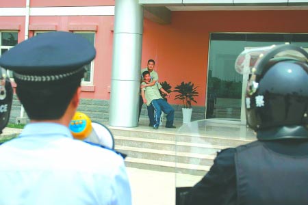 “張某,你已經(jīng)被包圍了,放下手中的兇器舉手投降,這是你唯一的出路!否則,你將承擔(dān)嚴(yán)重的法律后果!”宣教組對(duì)“罪犯”進(jìn)行勸說教育!吧購U話,叫監(jiān)獄領(lǐng)導(dǎo)來!不傷害人質(zhì)可以,你們給我準(zhǔn)備兩萬塊錢,再準(zhǔn)備一輛車,我就放了他!”張某惡狠狠地說,并把玻璃頂在李某的喉部,李某直叫“救命”。