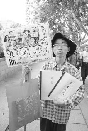 發(fā)表評(píng)論  手舉一個(gè)“要飯”的牌子和兩本書稿,口袋里裝著一把自制的名片。昨日上午,在漢口中山公園大門附近,一位被網(wǎng)友稱為“史上最牛乞丐”的男子現(xiàn)身街頭,圍觀群眾對(duì)其行為褒貶不一。