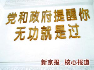在潁泉區(qū)政府辦公樓大堂里貼著的宣傳口號(hào)!∮浾 黃玉浩 攝