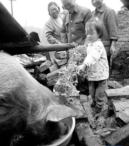 十多個戰(zhàn)士戴上口罩,搬豬圈廢墟上的磚塊、木板。當戰(zhàn)士把底層的一塊木板掀開的時候,男主人喊起來:“我的豬還活著!”原來,豬圈有兩層,上面是木板閣樓,堆放著許多木板和木炭。豬圈垮塌,木板閣樓和地面之間留下半米高的夾縫,這頭豬一直就在夾縫下趴著。黃杰注意到,豬圈垮了后,閣樓上堆放的木炭撒了一地,可能這頭豬吃了一個多月的木炭活了下來。至于豬喝什么,有人猜測是雨水。 (成都商報)