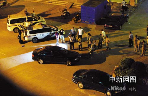 二十四日凌晨,警察在事發(fā)出租屋門前的馬路旁勘查。 作者 陳棟