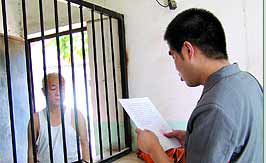 昨日下午2時(shí)30分,省高院刑二庭兩位審判人員乘車前往關(guān)押陳雙全的曲江監(jiān)獄。半小時(shí)后,審判人員在監(jiān)獄見到了陳雙全,當(dāng)時(shí)陳雙全上身穿了一件白色背心。