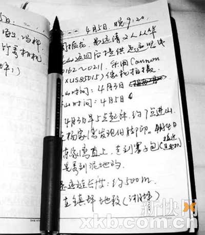 國(guó)家林業(yè)局鎮(zhèn)坪專(zhuān)家組筆錄周正龍等發(fā)現(xiàn)老虎腳印,周拍攝下記錄信息。