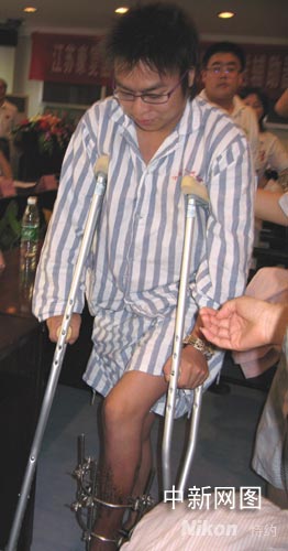 在該省人民醫(yī)院愛心病房,蘇波的左腿因脛腓骨骨折安裝了鋼筋固定,坐下時(shí)為不碰觸左腿,他總是用手輕輕托住關(guān)節(jié),有些費(fèi)力。但康復(fù)技師周秋敏對(duì)他很有信心:“蘇波很勤奮,每天都忍痛做康復(fù)訓(xùn)練,很是刻苦”。接受了一個(gè)多月康復(fù)治療,加上自身積極配合,蘇波今天終于要回家了——該醫(yī)院第一個(gè)腿部骨折康復(fù)并出院的四川地震傷員。