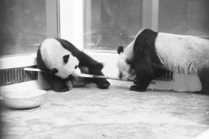 前晚,“希望”和“偉偉”住進武漢動物園熊貓館后,先花10余分鐘把臥室嗅了個遍,熟悉環(huán)境后,抱著飼養(yǎng)員送進的竹子吃起來。臨睡前,飼養(yǎng)員給它們送進一盆水,喝光后,兩個小家伙對鋁合金水盆產(chǎn)生了濃厚興趣,把它當(dāng)玩具拖過來,拉過去,搶到手后就用嘴咬,將嶄新的水盆咬得像篩子。