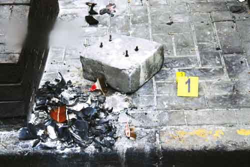 經(jīng)警方初步偵查,犯罪嫌疑人楊某,男,28歲,北京市人。當(dāng)天上午,楊某攜帶匕首、榔頭、噴霧劑、防塵面具等,在閘北區(qū)一綜合行政辦公大樓門口先點(diǎn)燃并拋投了8個(gè)用啤酒瓶自制的燃燒瓶,大門保安看到后迅速上前制止,遭楊威脅并被其用攜帶的匕首刺傷。隨后,楊即竄入辦公大樓,在底樓大廳和閘北公安分局治安支隊(duì)值班室用匕首刺傷4名正在辦公不及防備的民警。之后,楊又先后竄至10樓、11樓和21樓,在幾個(gè)不同的房間內(nèi)趁民警不備,用匕首刺傷5名民警。閘北