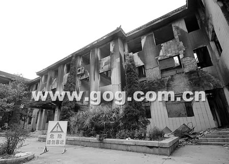 在甕安“6·28”打砸搶燒事件中,該縣公安局大樓、縣政府大樓、縣民政大樓、縣財(cái)政大樓和縣委大樓損毀嚴(yán)重。昨日,該縣已開(kāi)始全面修復(fù)縣政府和縣公安局大樓;而縣委大樓因?yàn)閾p毀嚴(yán)重?zé)o法修復(fù),今日將全部拆除。