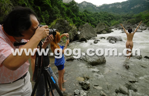 昨日下午3時許,從事人體模特5年,來自新加坡的人體模特張咪首先裸身出鏡。張咪擺好優(yōu)美的造型后,參加試鏡的兩名攝影師把鏡頭聚集模特美麗的胴體,隨著攝影師們不斷按下快門,模特秀麗的身姿連同南江大峽谷美景一起定格在鏡頭里。